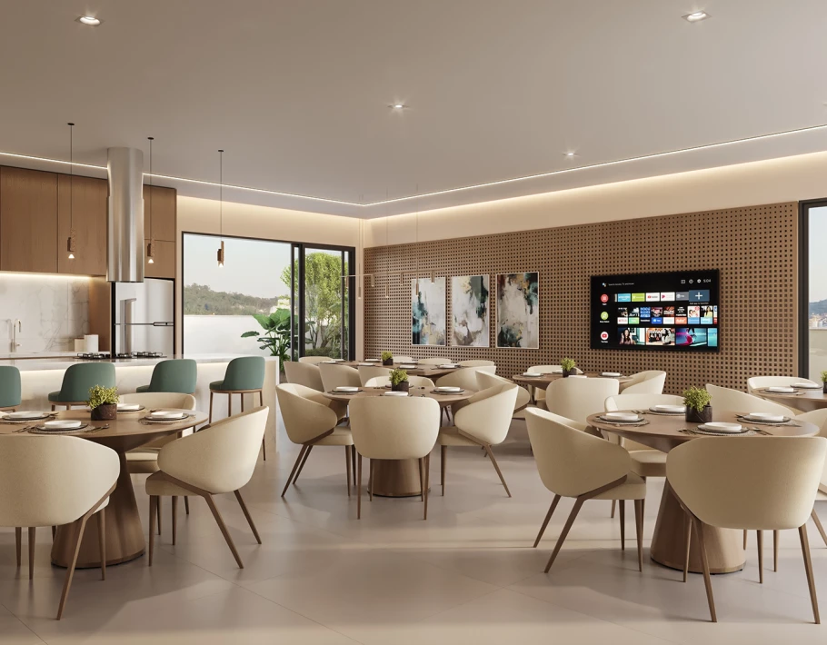 03 dormitórios (sendo 1 suíte), brinquedoteca, salão de festas, terraço, espera p/ split, 02 elevadores, espaço Fitness, piscina com Deck Molhado, living integrado, persianas automatizadas, sistema de segurança por câmeras, rooftop, porte-cochère, possibilidade personalização de planta, lavabo, churrasqueira a carvão. Contemple a natureza e aprecie a brisa do mar pela sua janela! 🪸